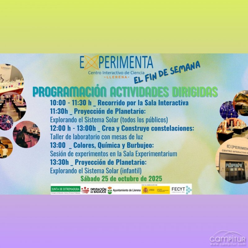 El próximo sábado 25 de octubre, el Centro Interactivo de Ciencia Experimenta de Llerena abrirá sus puertas a una nueva jornada de actividades dirigidas que prometen despertar la curiosidad científica de grandes y pequeños. Desde las 10:00 de la mañana hasta las 13:30 horas, los visitantes podrán participar en una completa programación que combina diversión, experimentación y divulgación científica.
